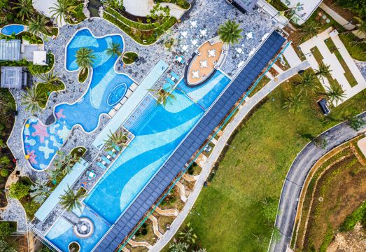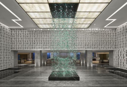 由广东合汇集团有限公司投资兴建的广州合汇温泉酒店,邻近国家4A旅游风景区增城白水寨,该景区拥有原始森林、浅滩湿地、峡谷天池等广东罕见自然生态资源。与之毗邻的还有石马龙湿地公园,是占地约16公顷的滨水景观花园。两处景区的特点都是以“水”为主题,傍水而建的广州合汇温泉酒店,在设计时,玩转“水”的灵动。 凭借“东意西境”的设计理念享誉国际酒店室内设计领域的CCD香港郑中设计事务所,主笔了广州合汇温泉酒店的室内设计。以“水的多元形态”为设计主题,同时提出“二元性”的概念,透过酒店装修和家私材质的碰撞, 从而达到二元对立到形态互补的和谐共处。